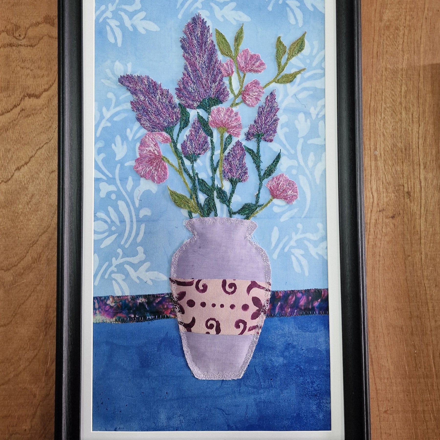 Spend two creative days exploring textiles and stitch as you design and make your own stunning “Flowers in a Vase” artwork.